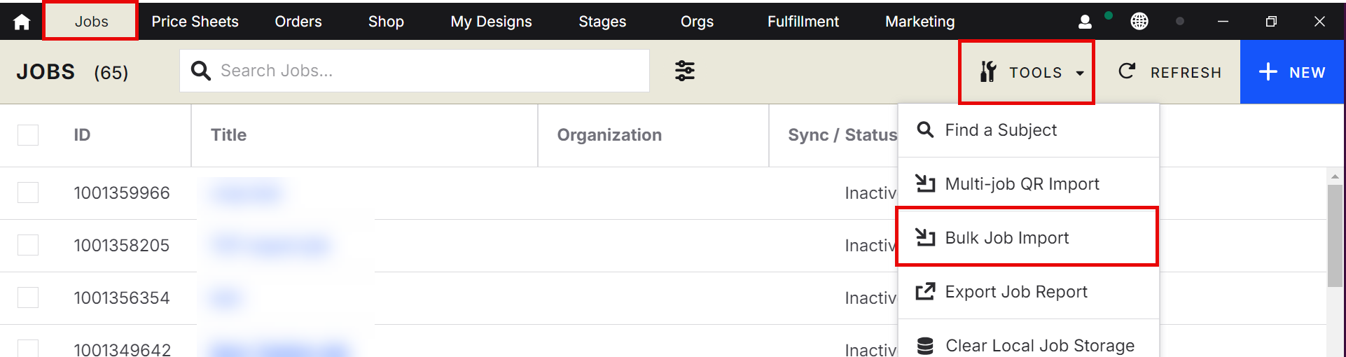 3. Select Bulk Job Import