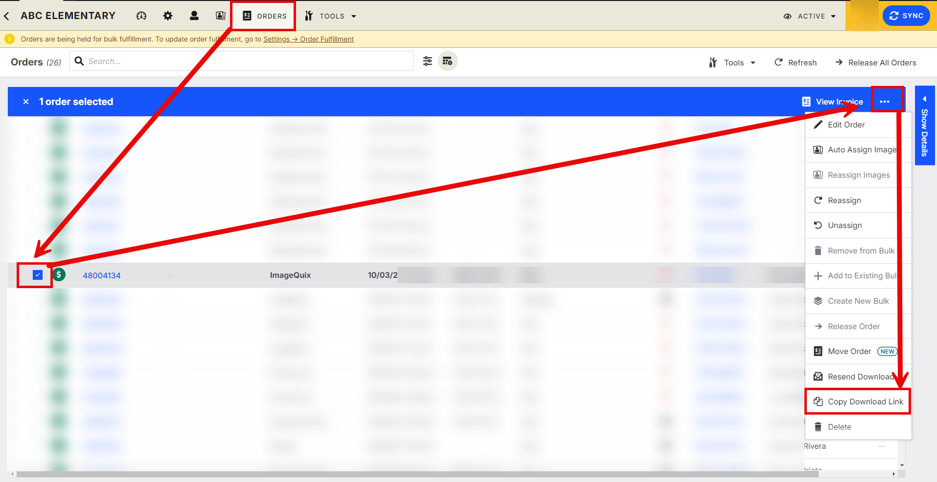 You can also do this within the main orders tab: