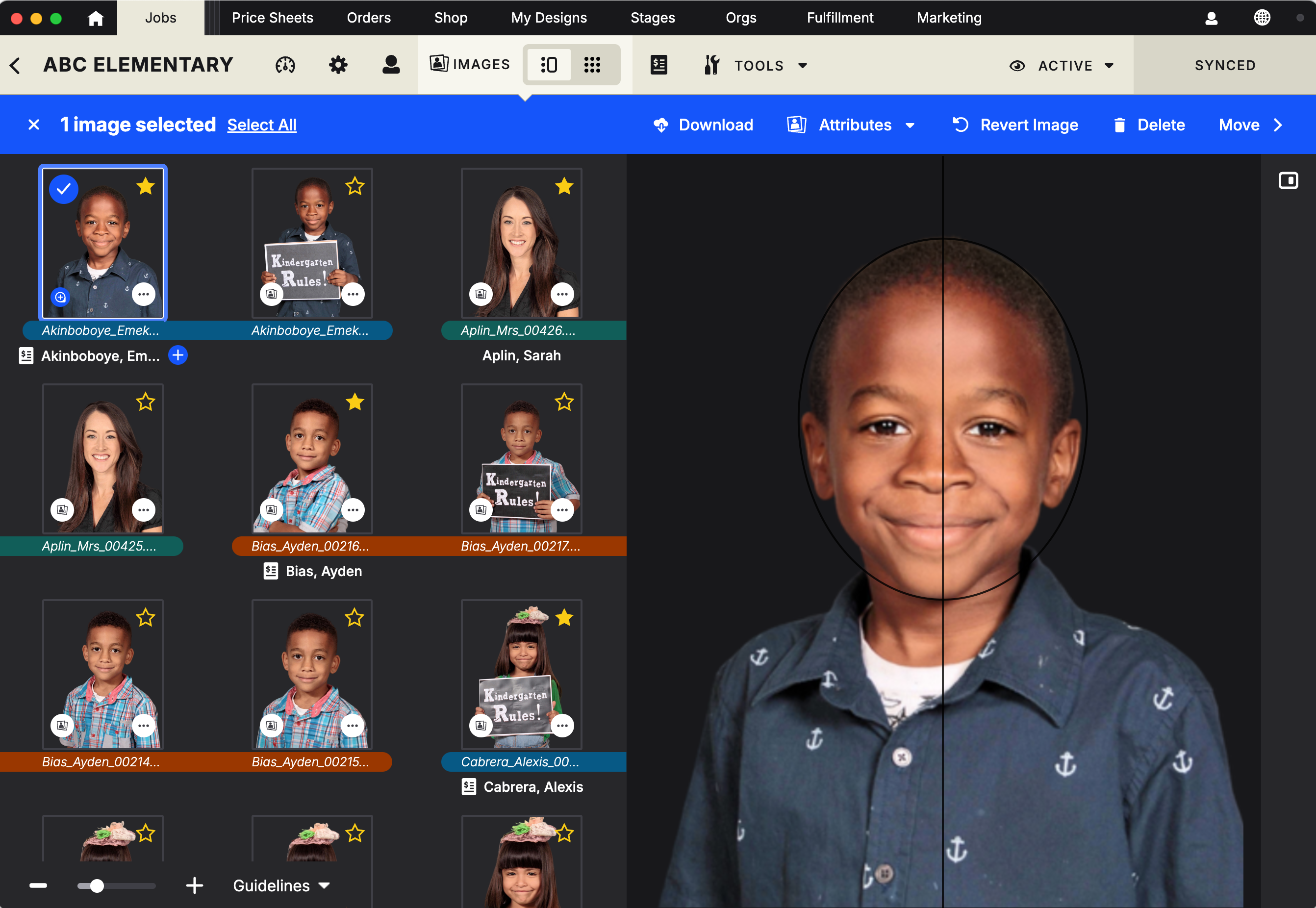 Pro Tips: The Orders Icon next to the Subject name indicates that this Subject has had orders placed in the Job. You can also select the Primary Image attribute by clicking on the Gold Star in the top-right corner.