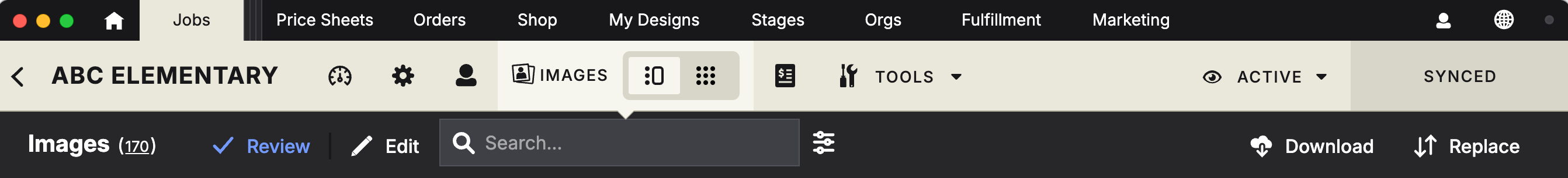 The Images tab directs attention to the images uploaded for your job. Here, you can review and edit single or multiple images within a Subject Job. This tab is exclusively accessible to Smart Workflow members. To access the Images tab, click on the Images icon in the Navigation Bar.