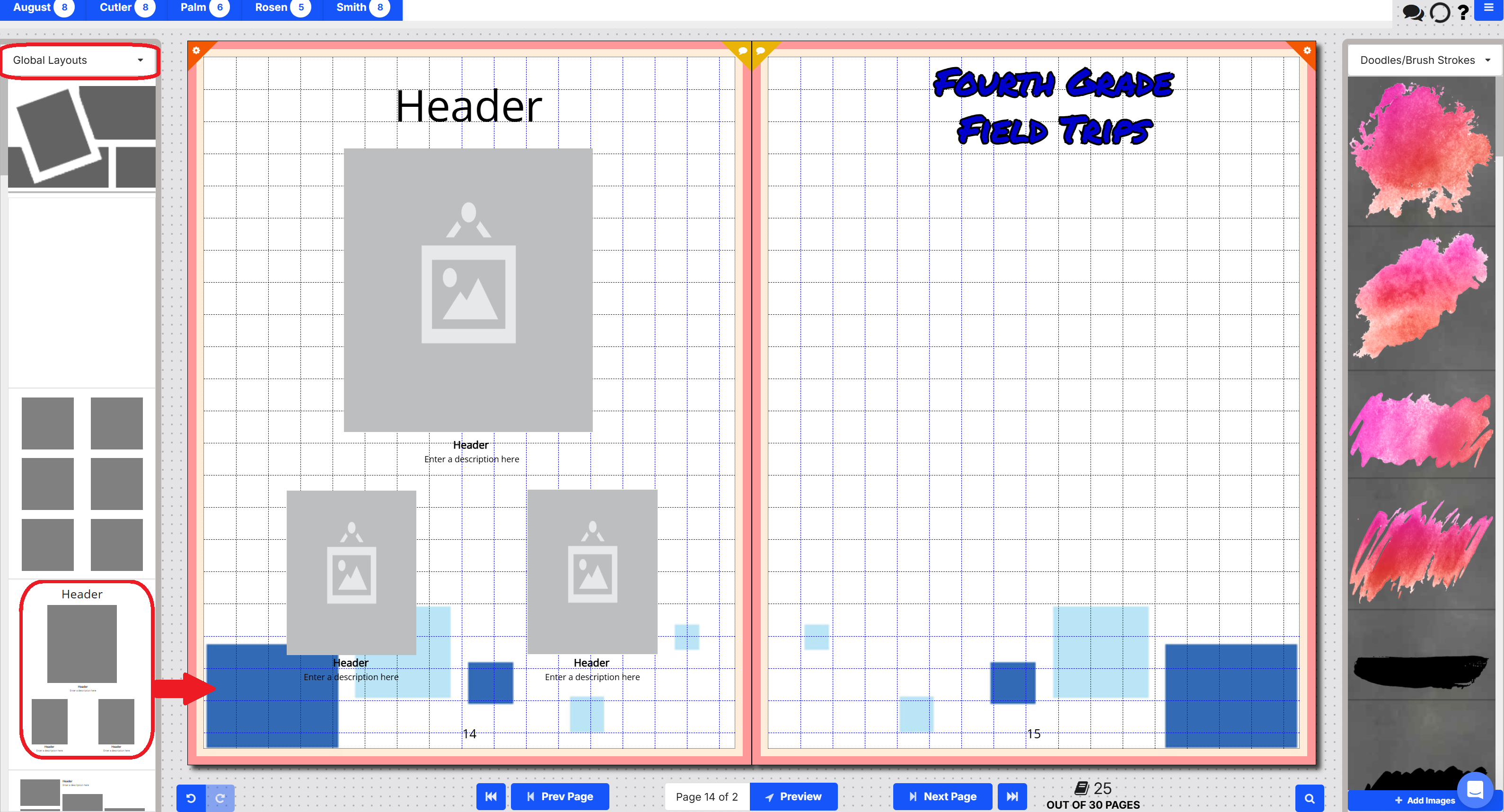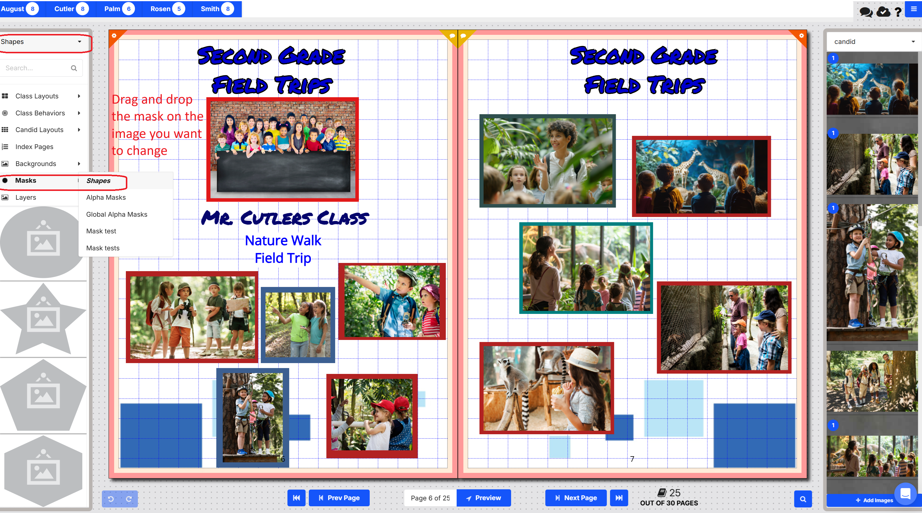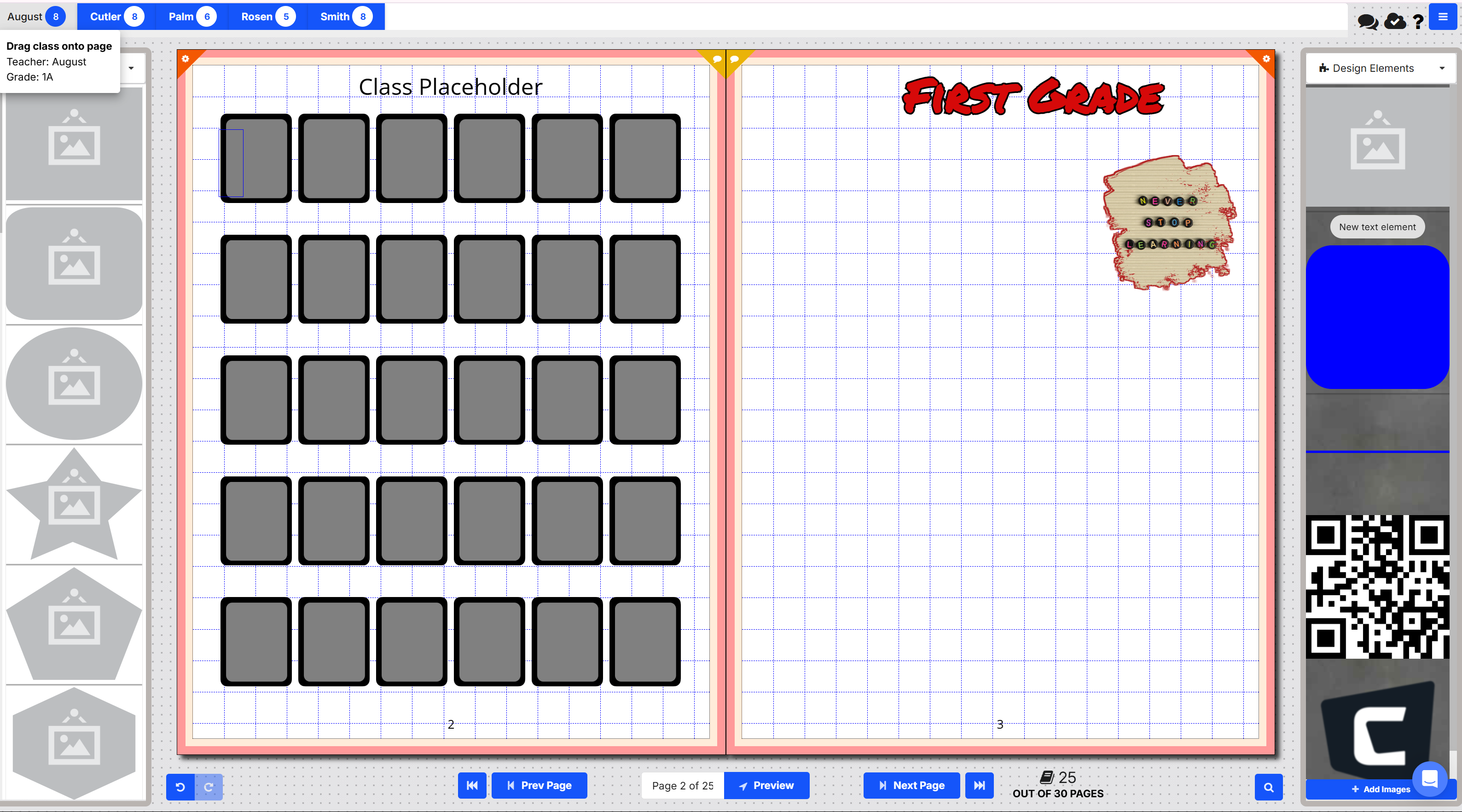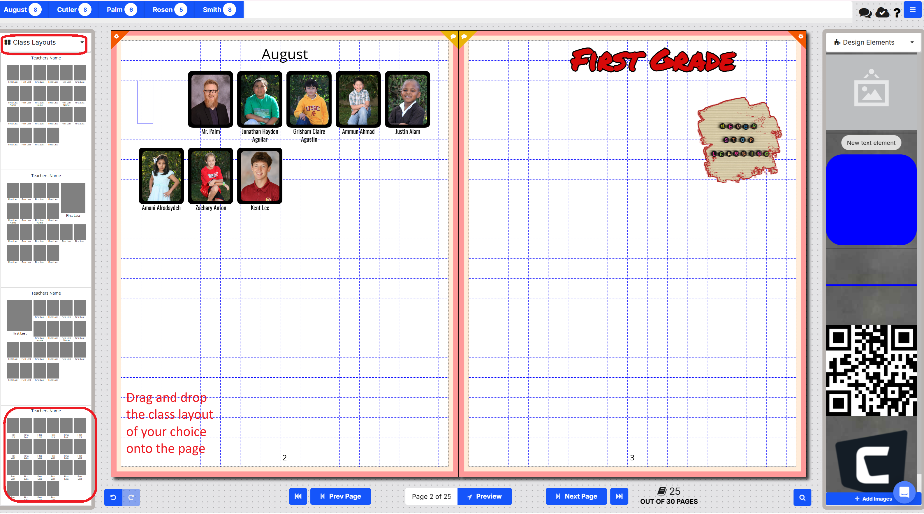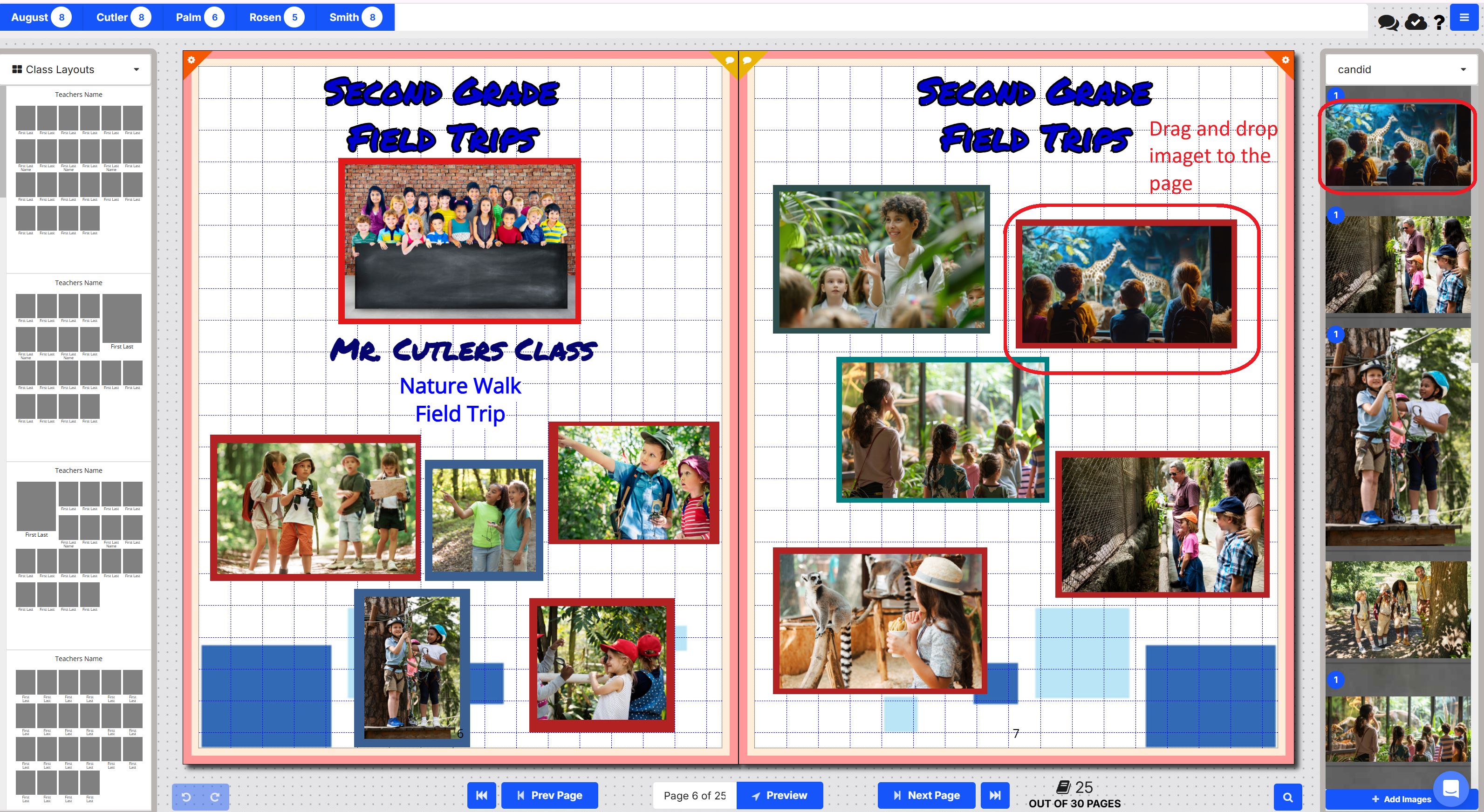 When you are ready to start laying out your class pages, click and drag one of the batch names at the very top onto a page.