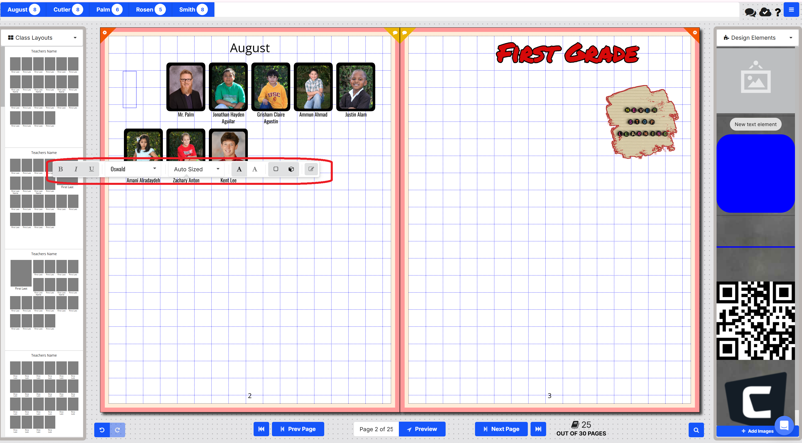 Clicking on the subject labels or images will bring up toolbars. Changes to one subject will apply to all of the subjects in that group/batch. You can change the font, color, or add a stroke and drop shadow from these toolbars.