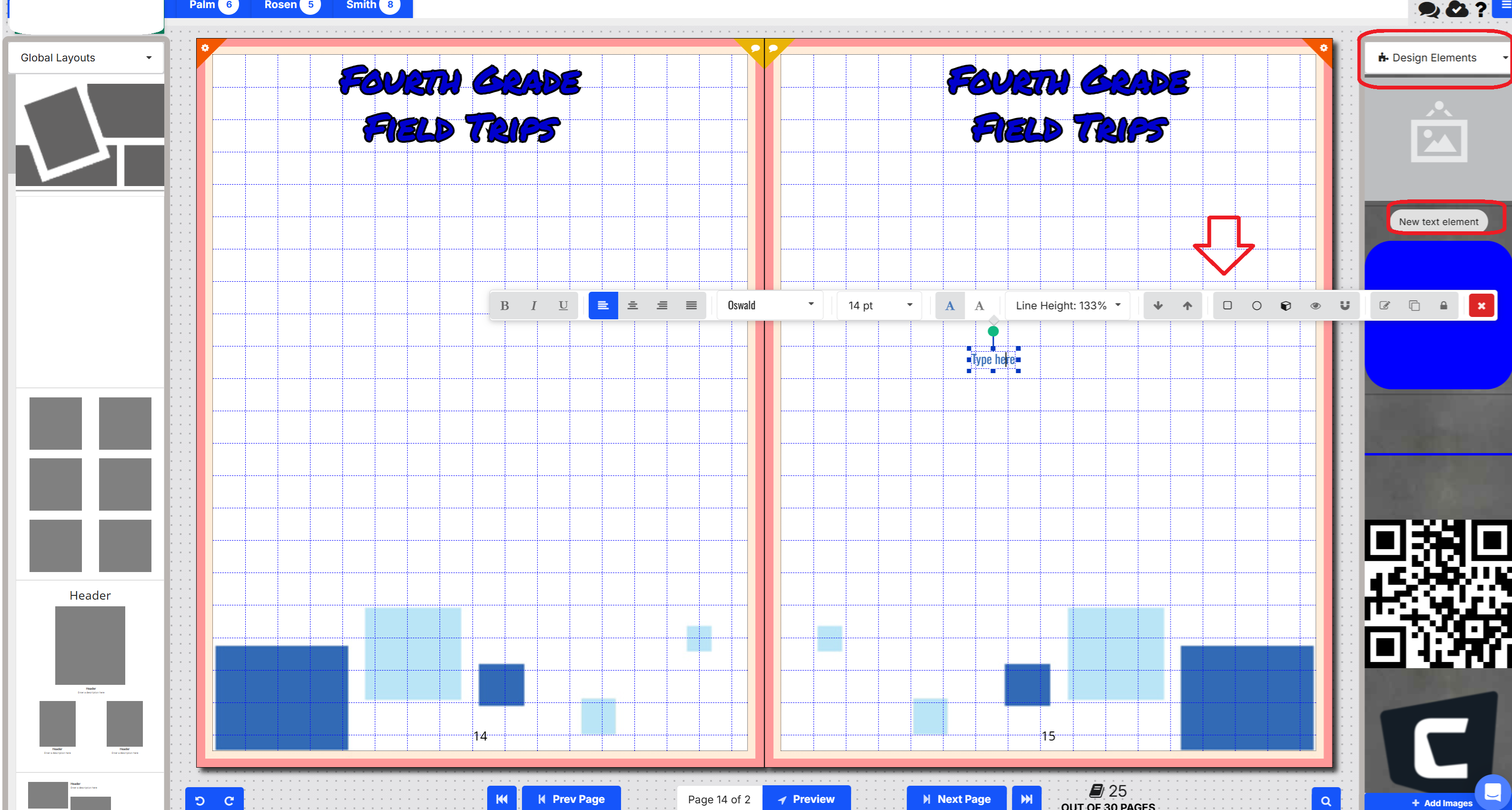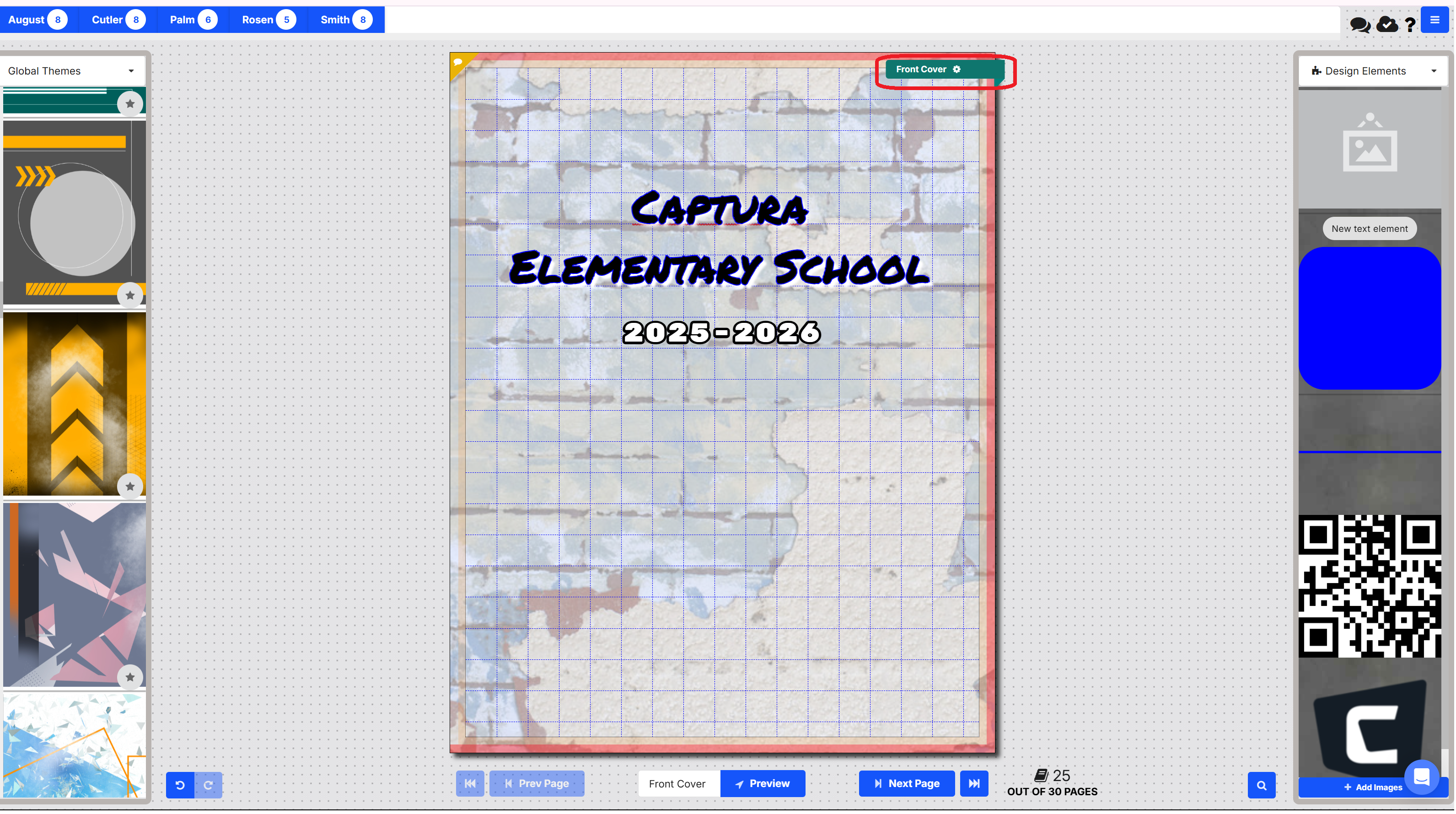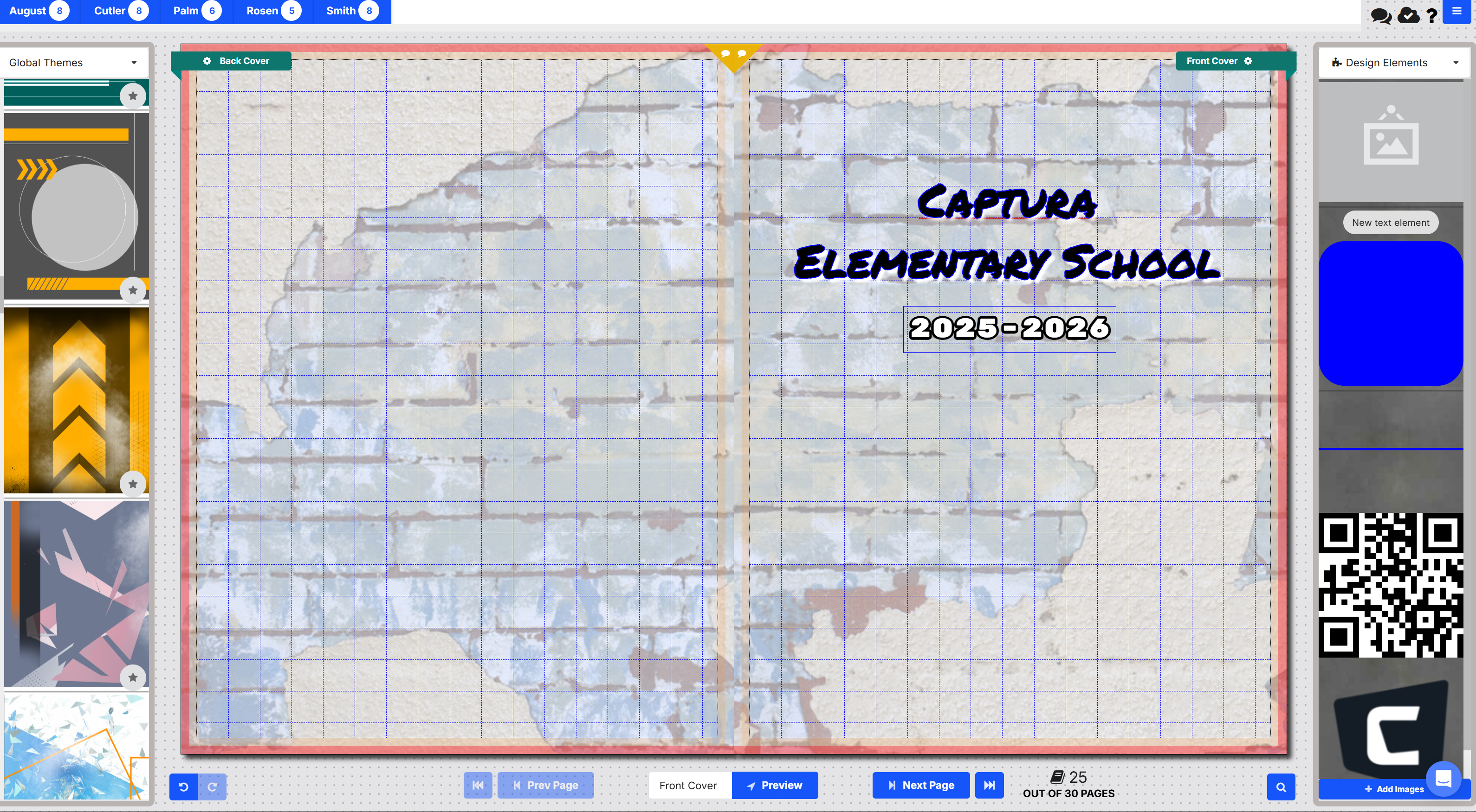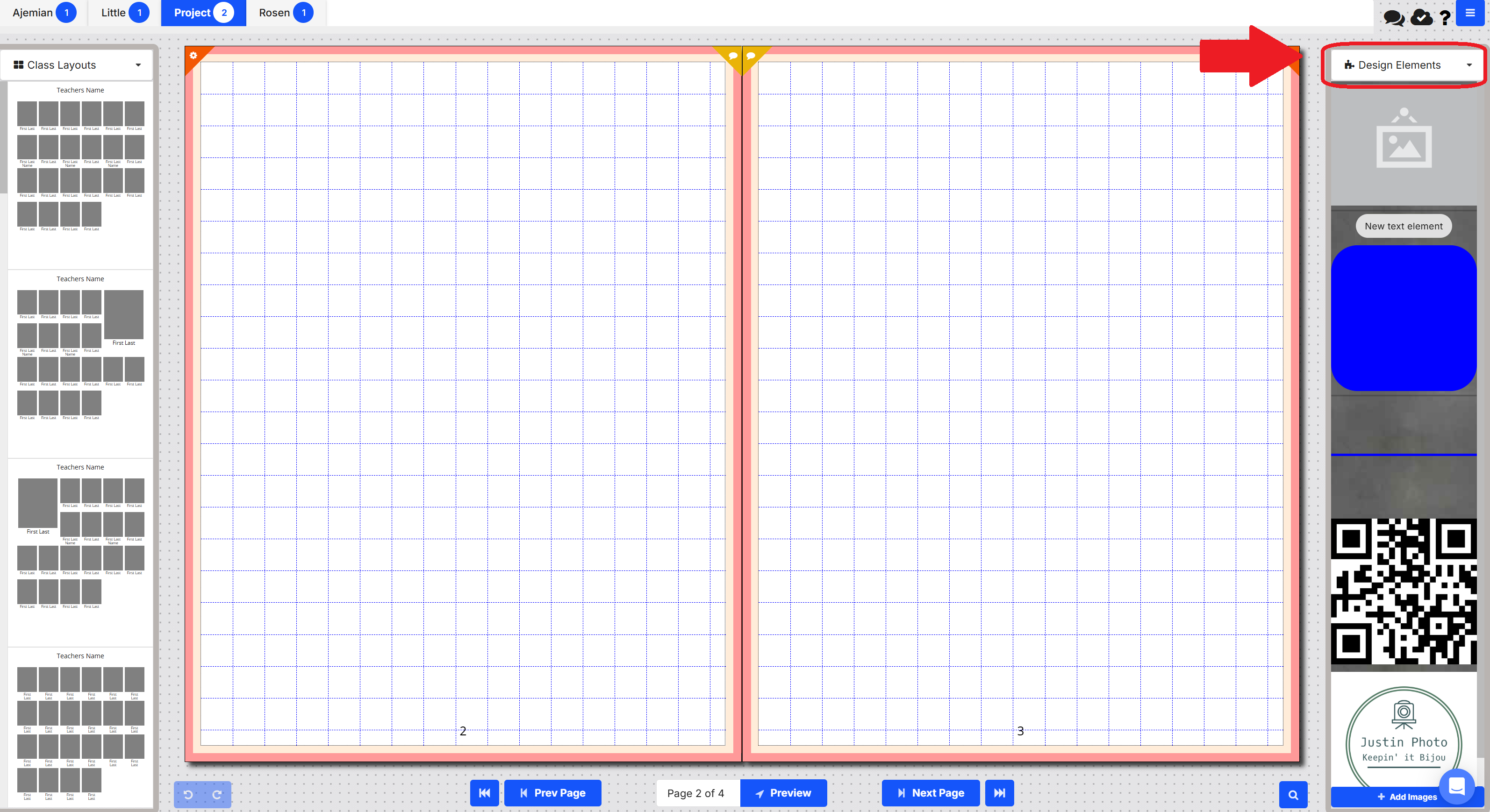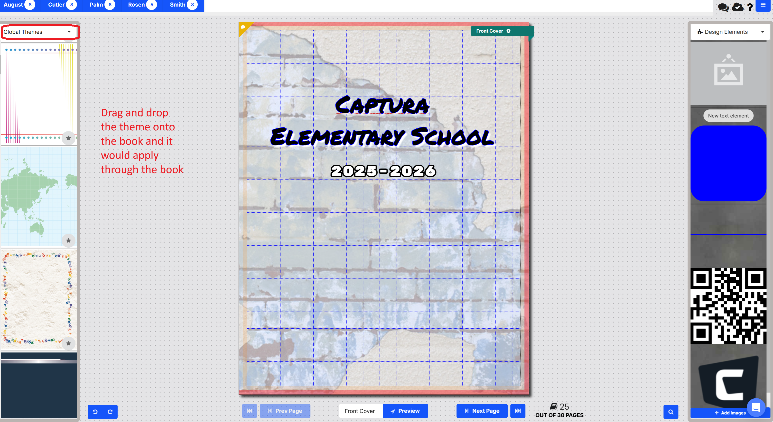 Everything in Captura Yearbooks is designed around drag and drop. You can add content from the left and right sidebars by dragging it onto the page where you want it.