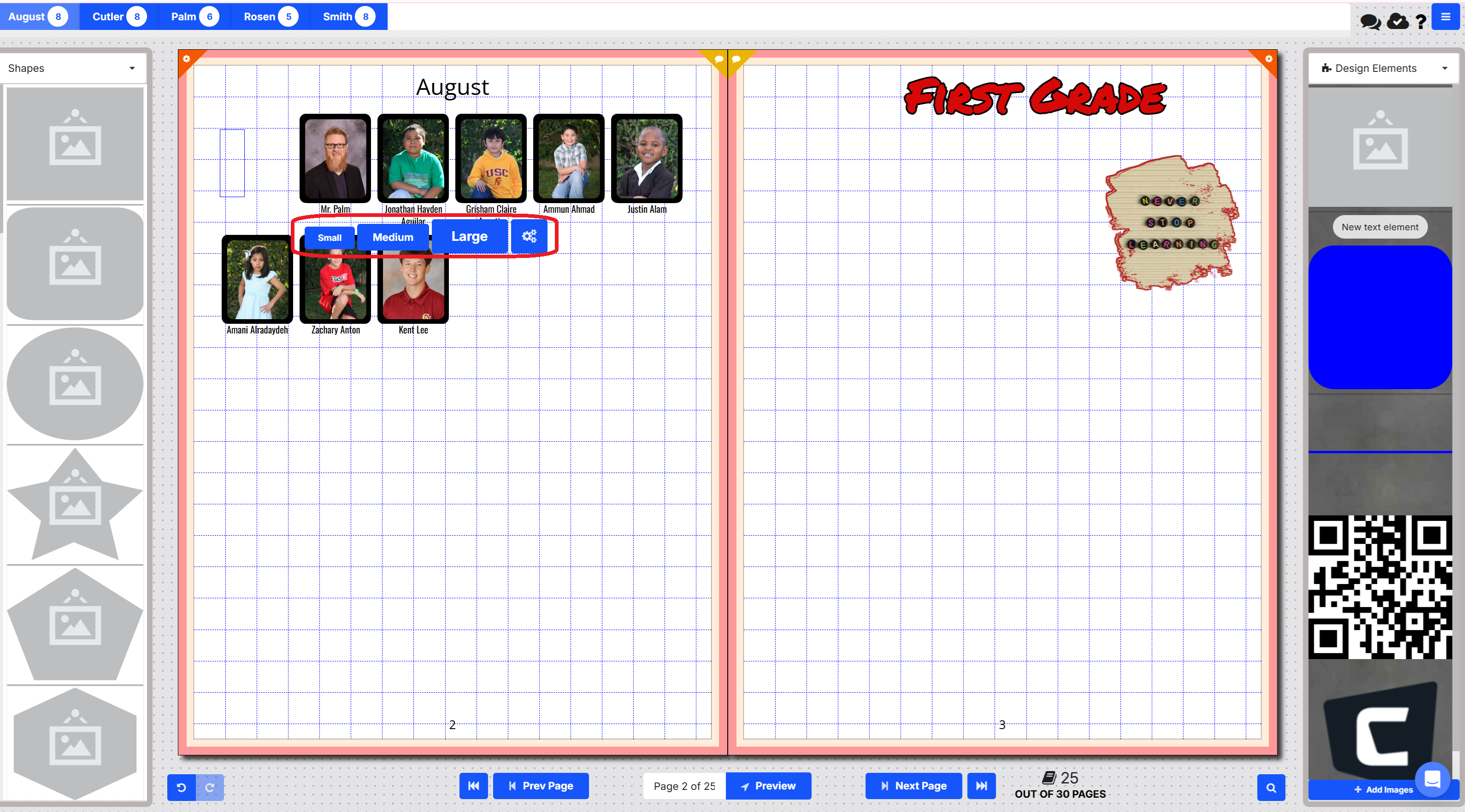 When you hover over a class page, you will see some buttons appear to control how big the subject cells are. Click on small, medium, or large to change the default size of the cells. If you click on the orange gear button, you can also set an exact number of columns and rows to have per page.
