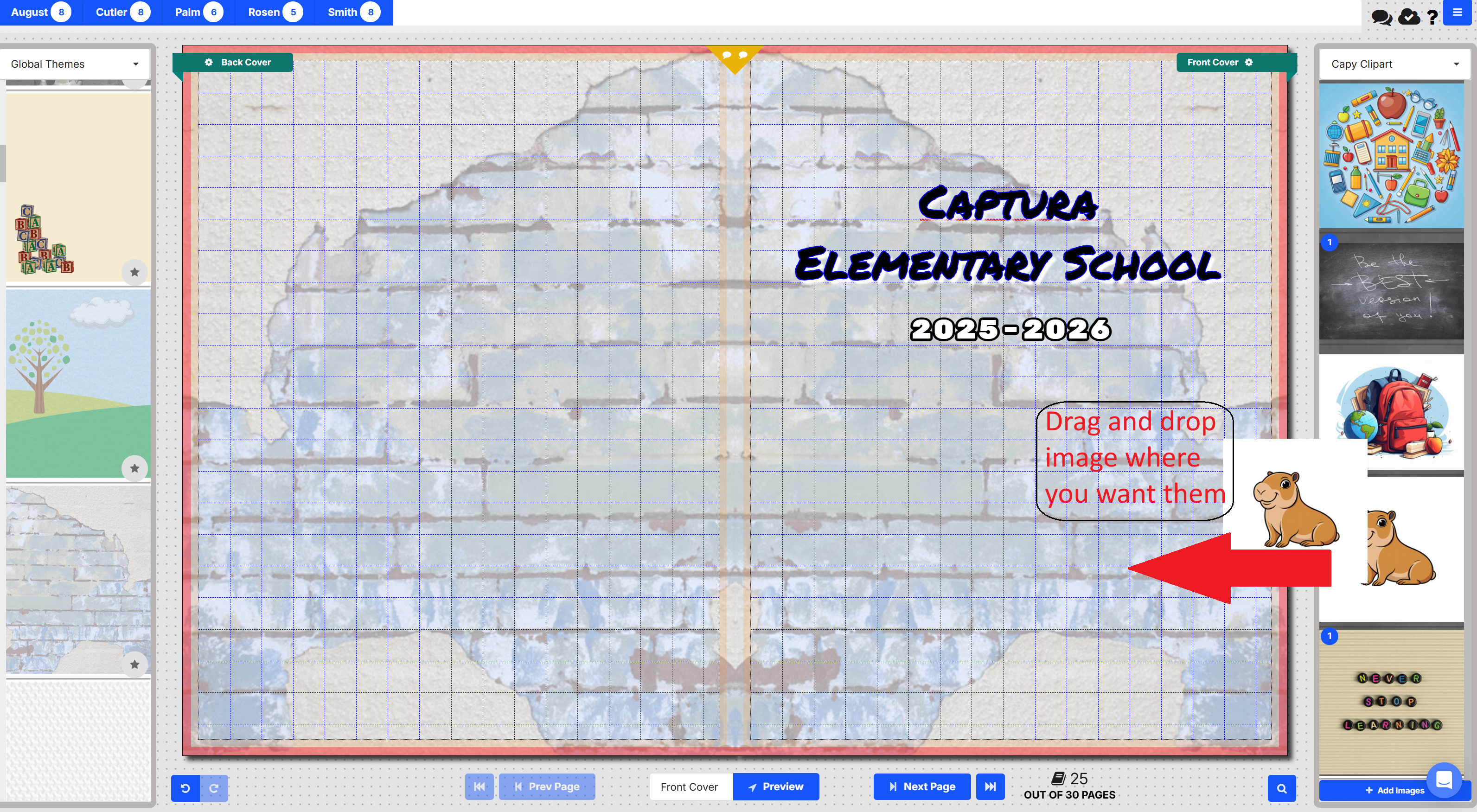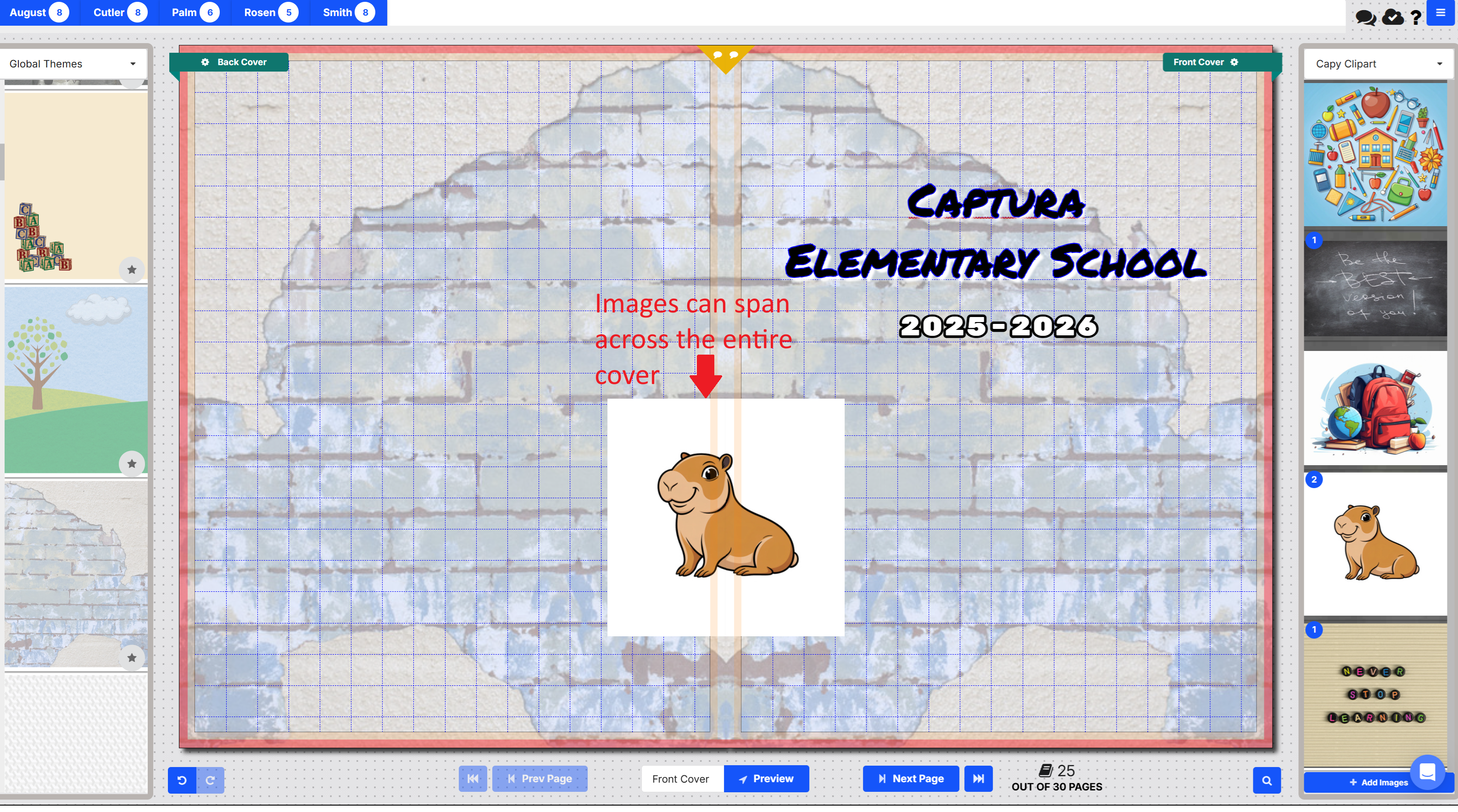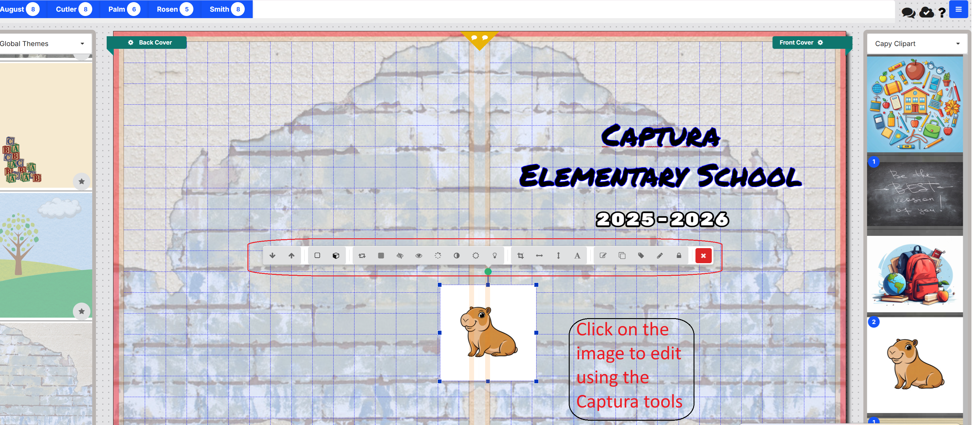 When opening a book, it's displayed as if you're looking at the real thing. Now you just have to design it! This article will help you learn how to create different types of cover designs for your Captura Yearbooks.