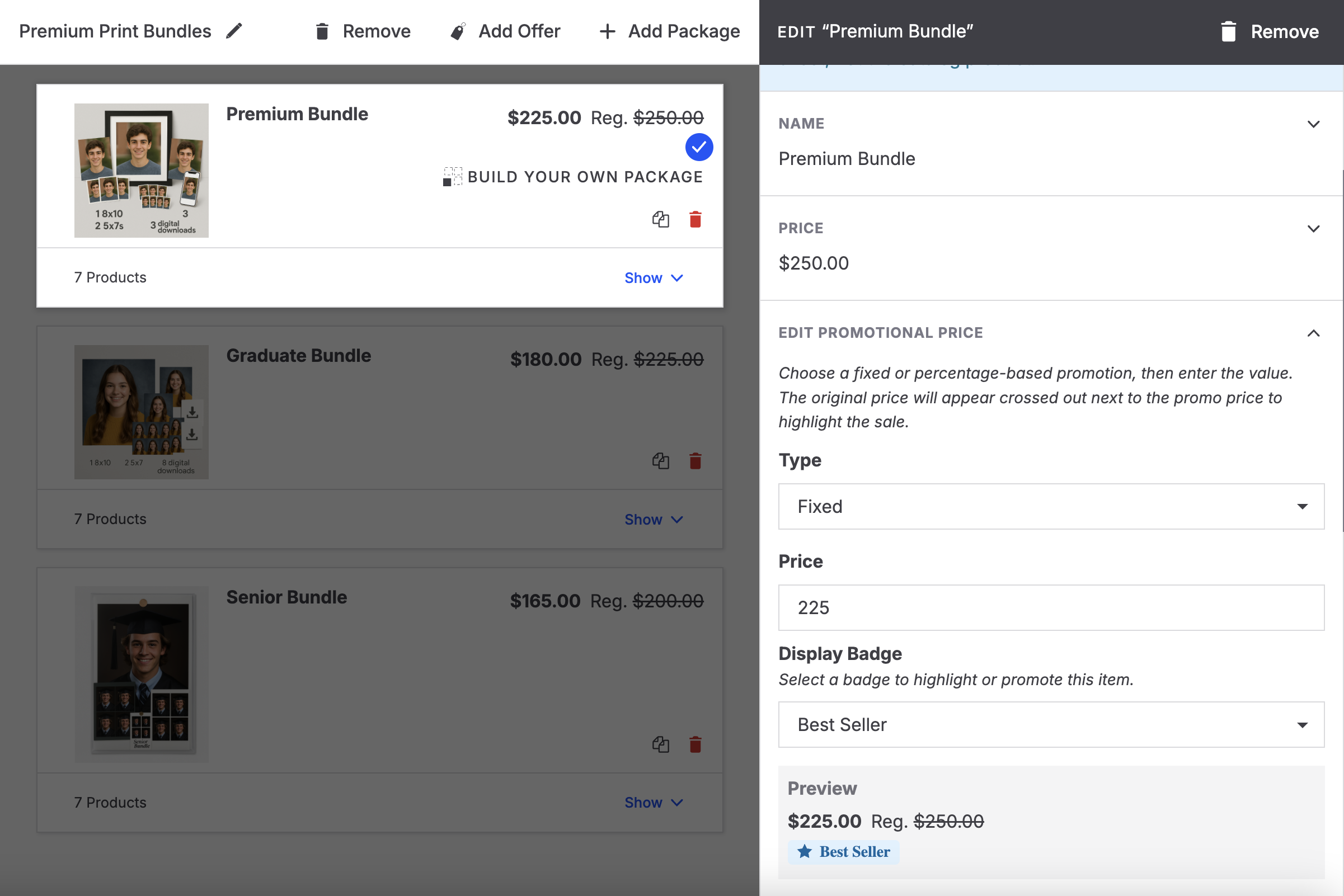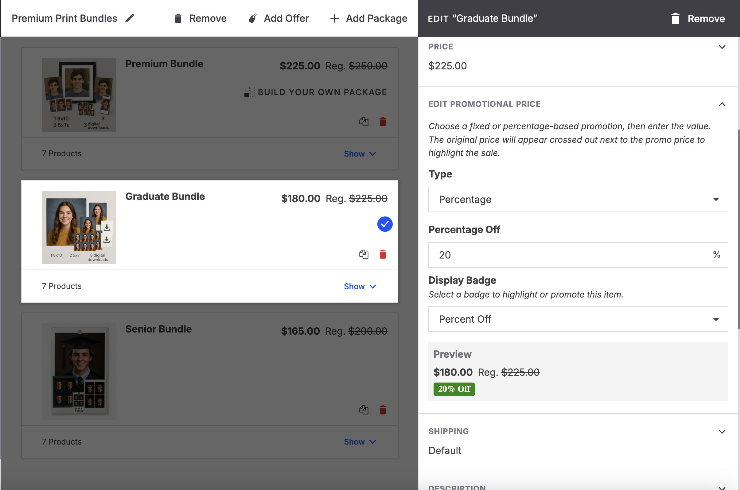 If you’ve set a promotional price, the “% Off” badge will: