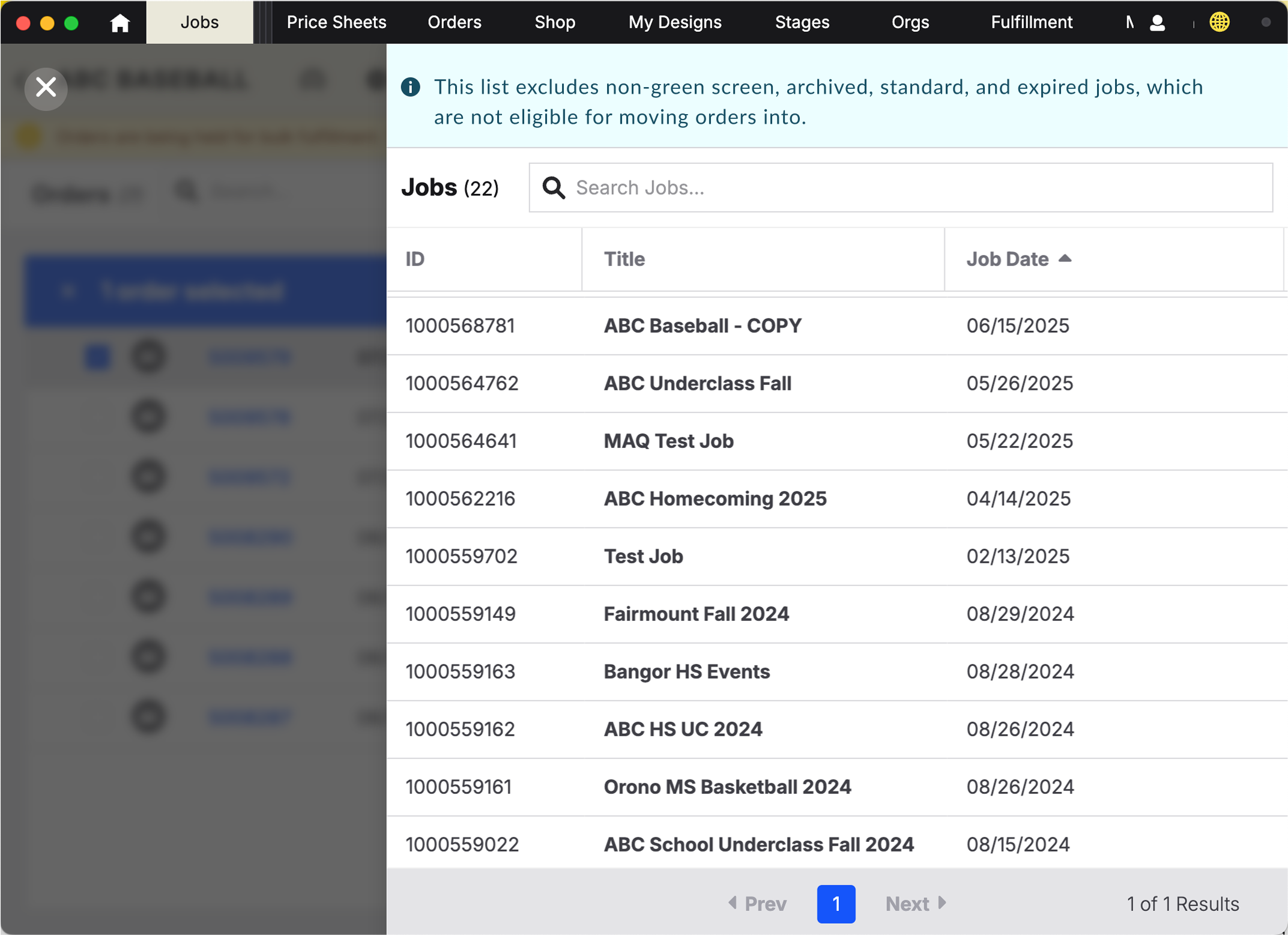 Green Screen jobs can only move to other Green Screen jobs.