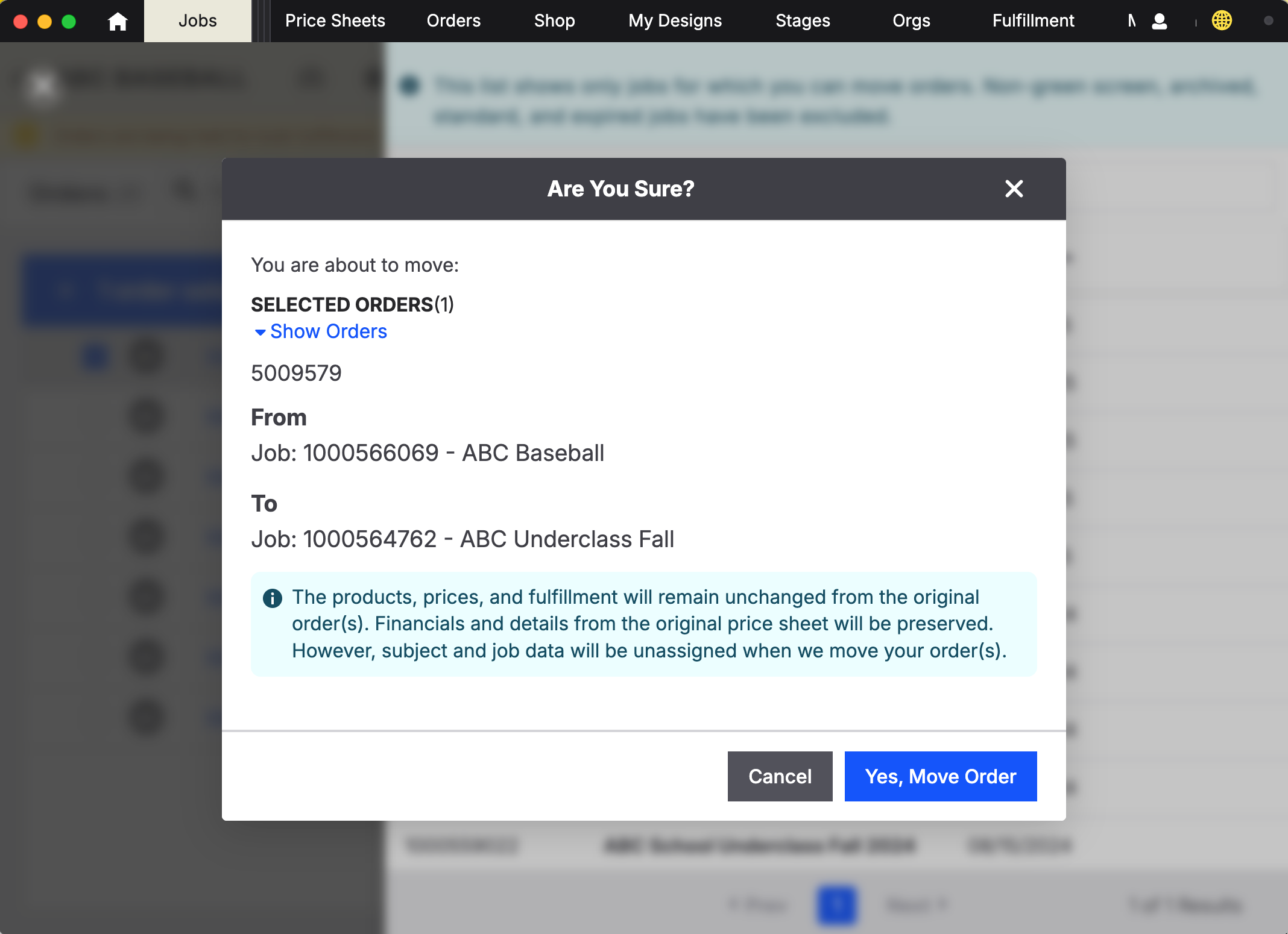 Click “Yes, Move Order” to confirm.