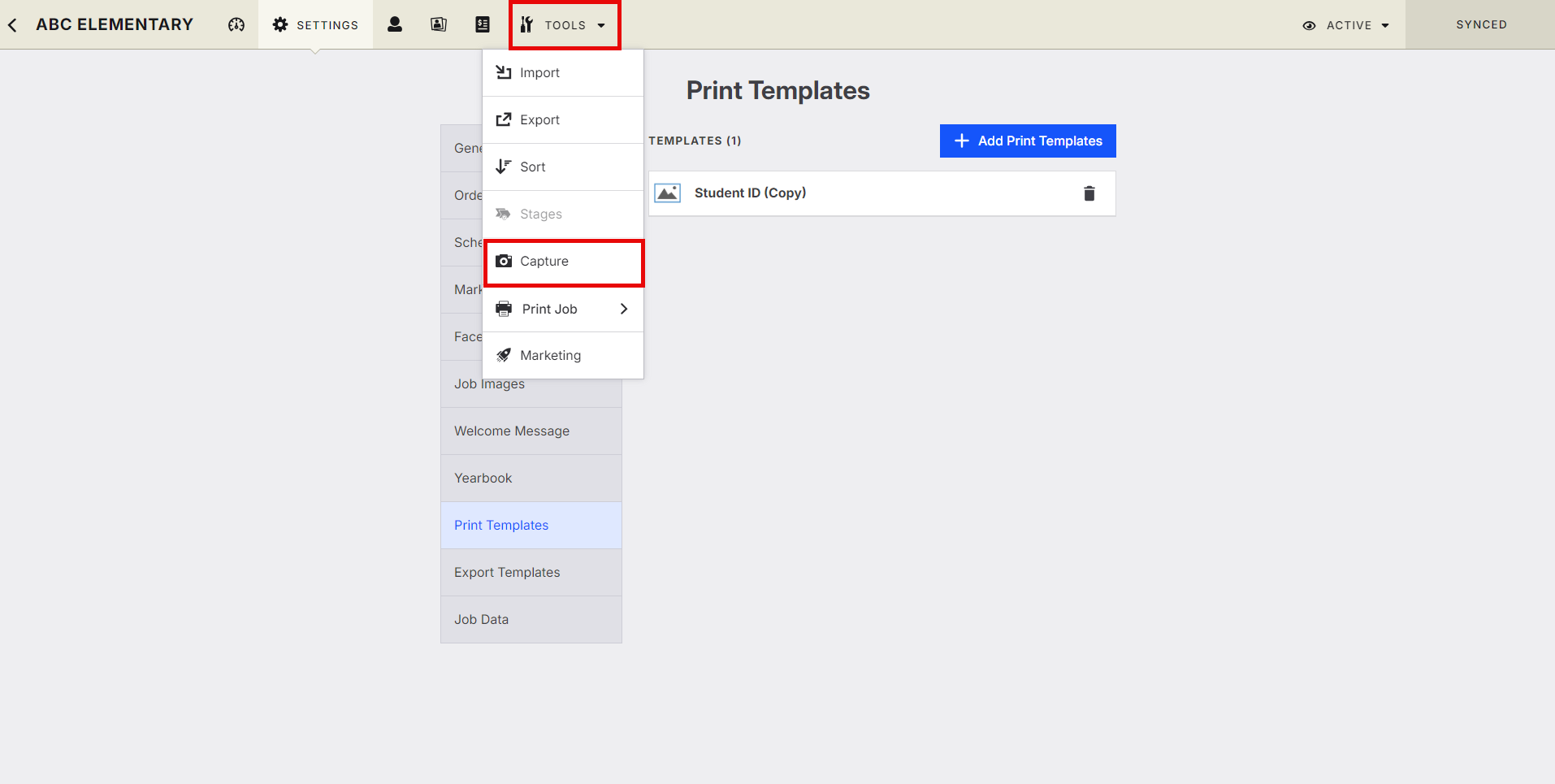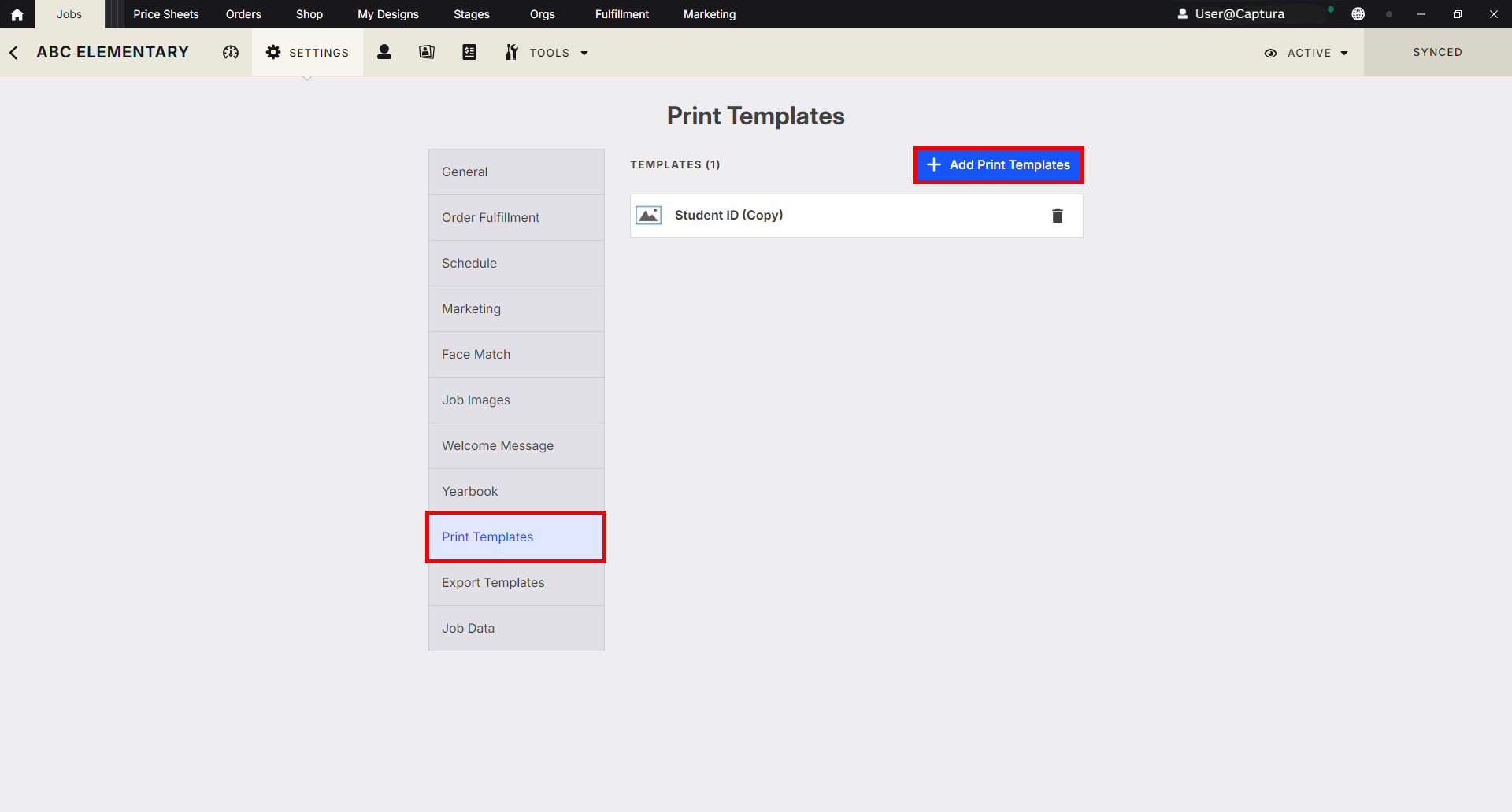 Add the specific ID card print template you previously created in My Designs. (Need help? Learn more here).