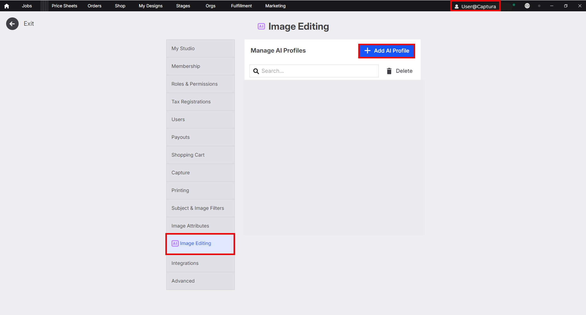 Click into the Search profiles menu